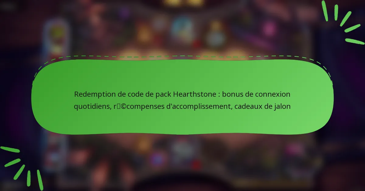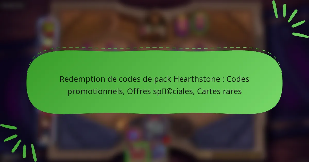 La validation des codes de paquet Hearthstone permet aux joueurs de débloquer des paquets de cartes en entrant des codes uniques obtenus lors d’événements en ligne, de promotions ou d’occasions spéciales. Ce processus améliore le gameplay en offrant des récompenses précieuses dans le jeu, et les joueurs peuvent échanger ces codes soit dans le jeu, soit sur le site officiel de Blizzard. Participer à divers événements en ligne offre non seulement des opportunités de récompenses, mais favorise également l’interaction communautaire entre les joueurs.